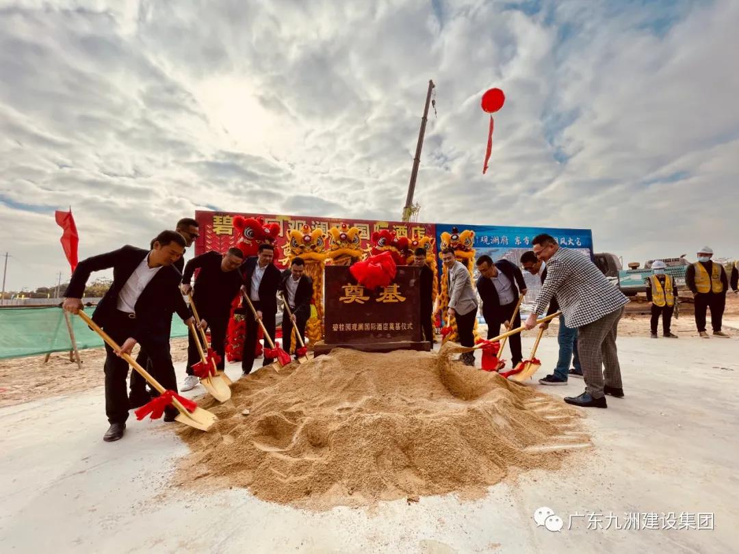 ? ? 碧桂園觀瀾國際酒店各參建主體領導共同為該項目揮鍬奠基,將象征著圓滿與希望的奠基石深深埋進這片熱土中,伴隨著天空彩帶飄落、禮炮齊鳴、運輸車鳴笛聲、挖機鏟車擺臂,碧桂園觀瀾國際酒店奠基儀式正式圓滿成功。